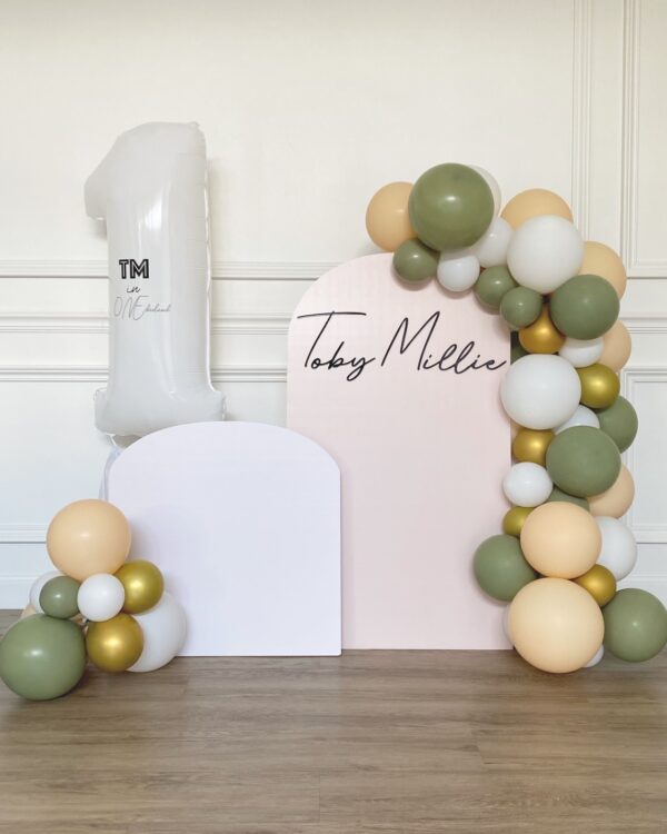 แบคดรอปลูกโป่ง ฉากลูกโป่ง First Birthday Balloon Backdrop – Safari – Green & White