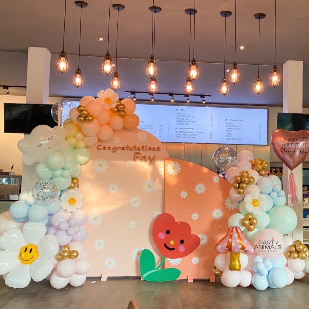 แบคดรอปลูกโป่ง ฉากลูกโป่ง Graduation Balloon Backdrop – Floral Party – Multicolour & Daisy