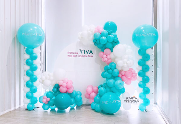 แบคดรอปลูกโป่ง ฉากลูกโป่ง Grand Opening Balloon Backdrop – Mint Green & Pink Balloons with Balloon Columns