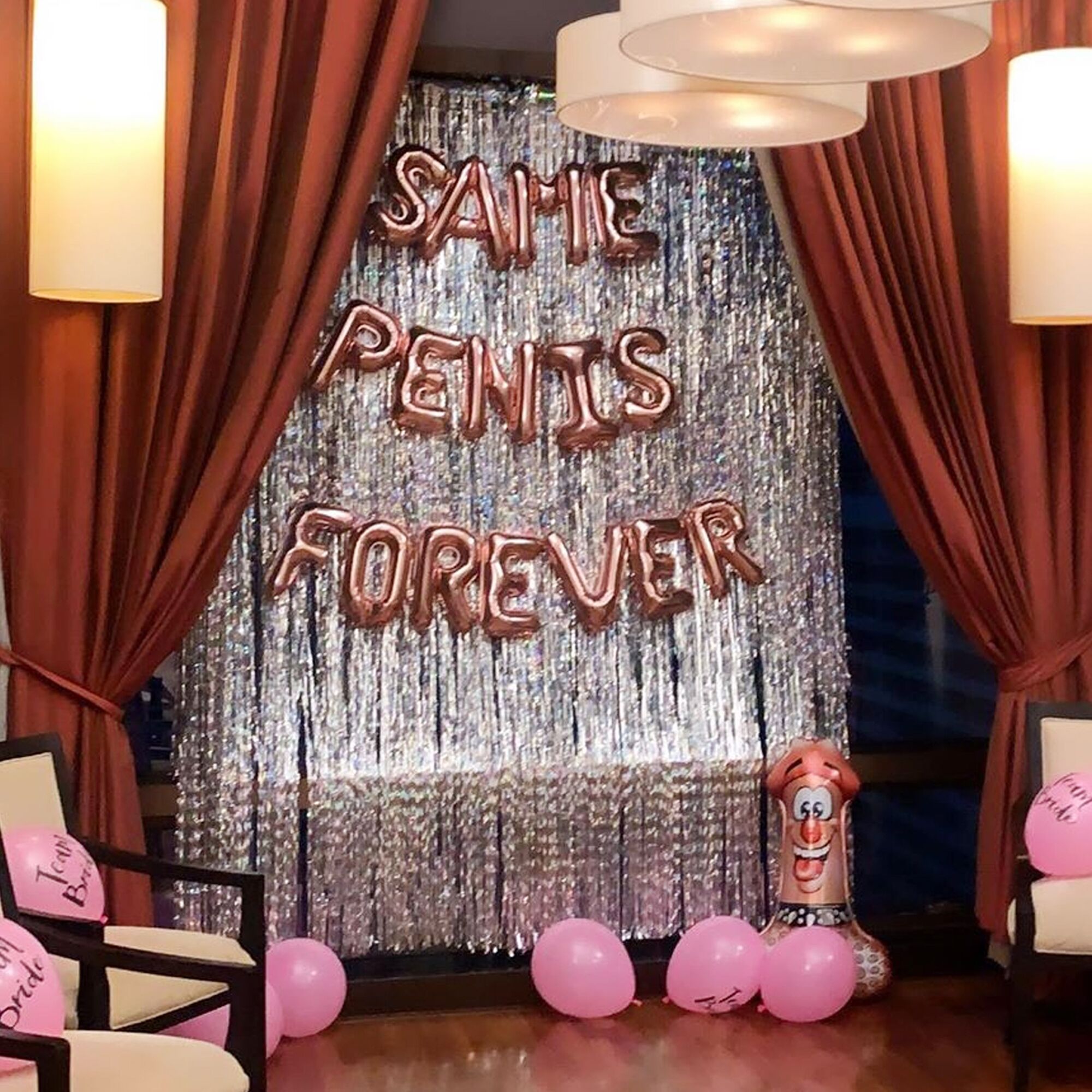 ลูกโป่งปาร์ตี้สละโสด ลูกโป่งเฮนไนท์ Hen Party Balloon – SAME PENIS FOREVER Backdrop for K.Baitoey R Siam