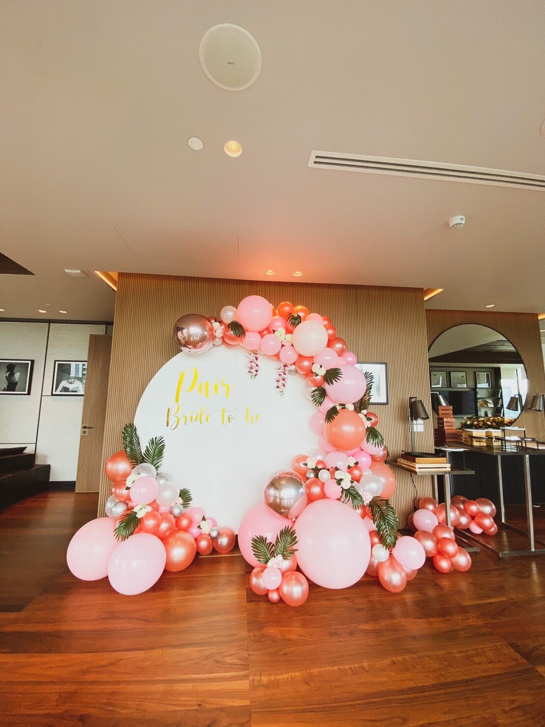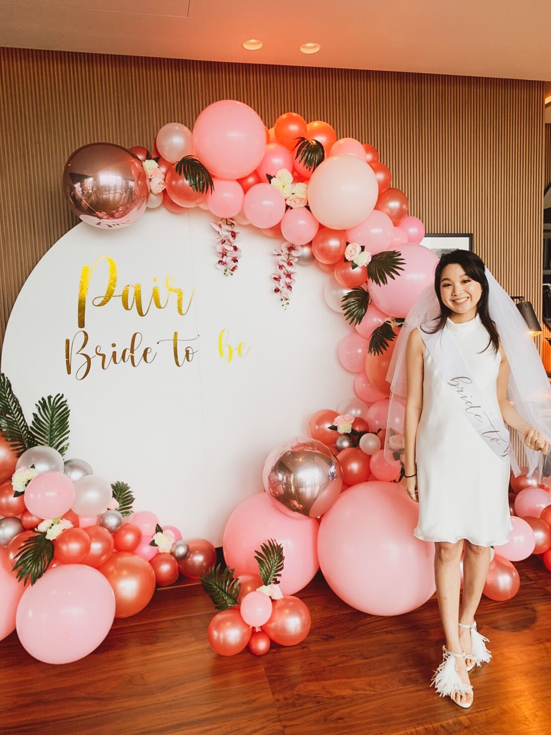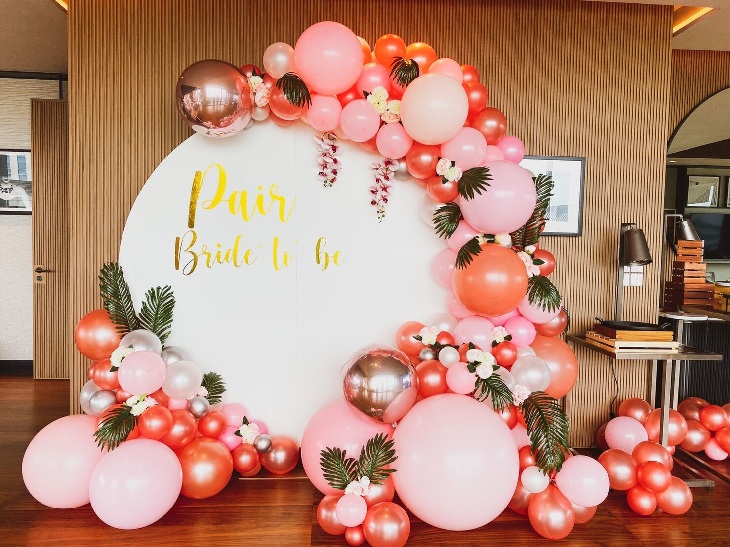 แบคดรอปลูกโป่ง ฉากลูกโป่ง Hen Party Balloon Backdrop – Rose Gold & Pink Bride to be