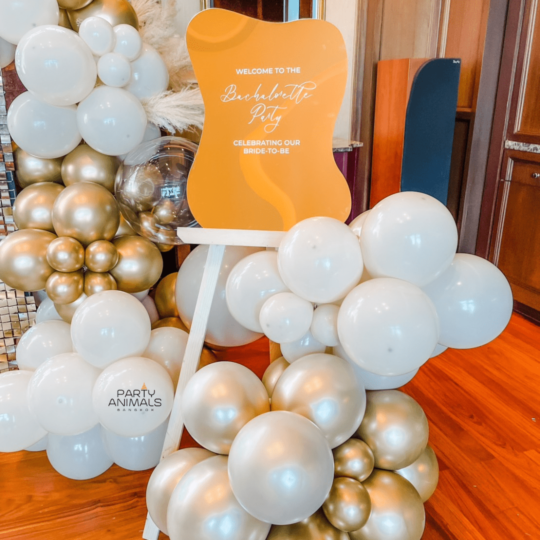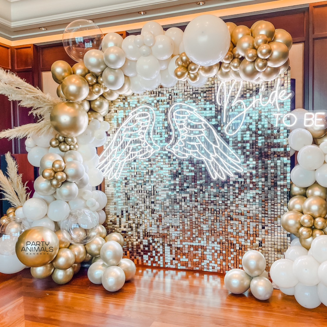 แบคดรอปลูกโป่ง ฉากลูกโป่ง Hen Party Balloon Backdrop – Gold Shimmer Wall