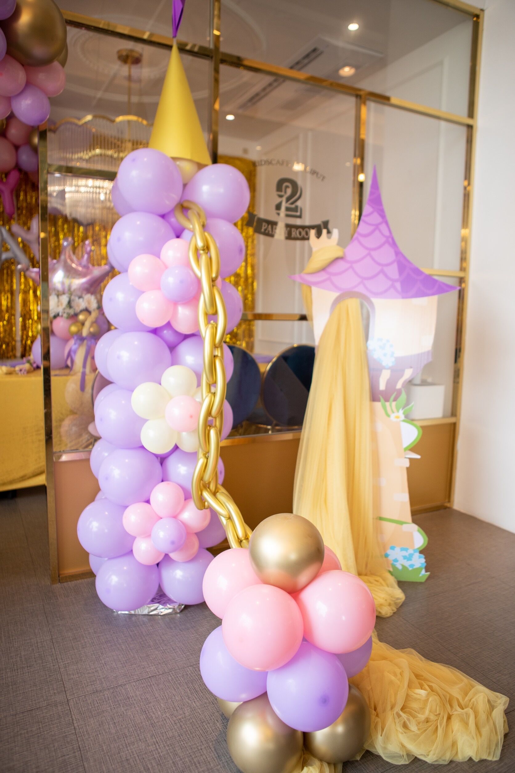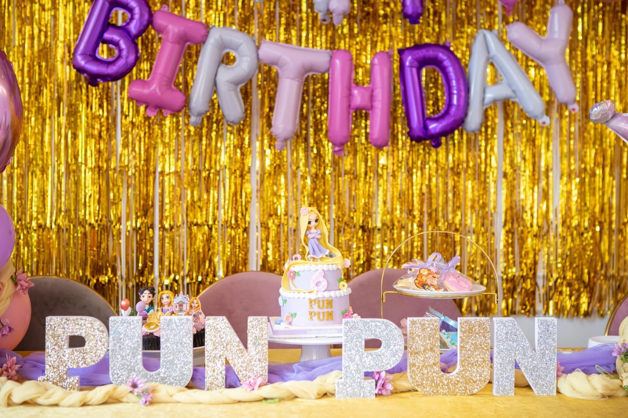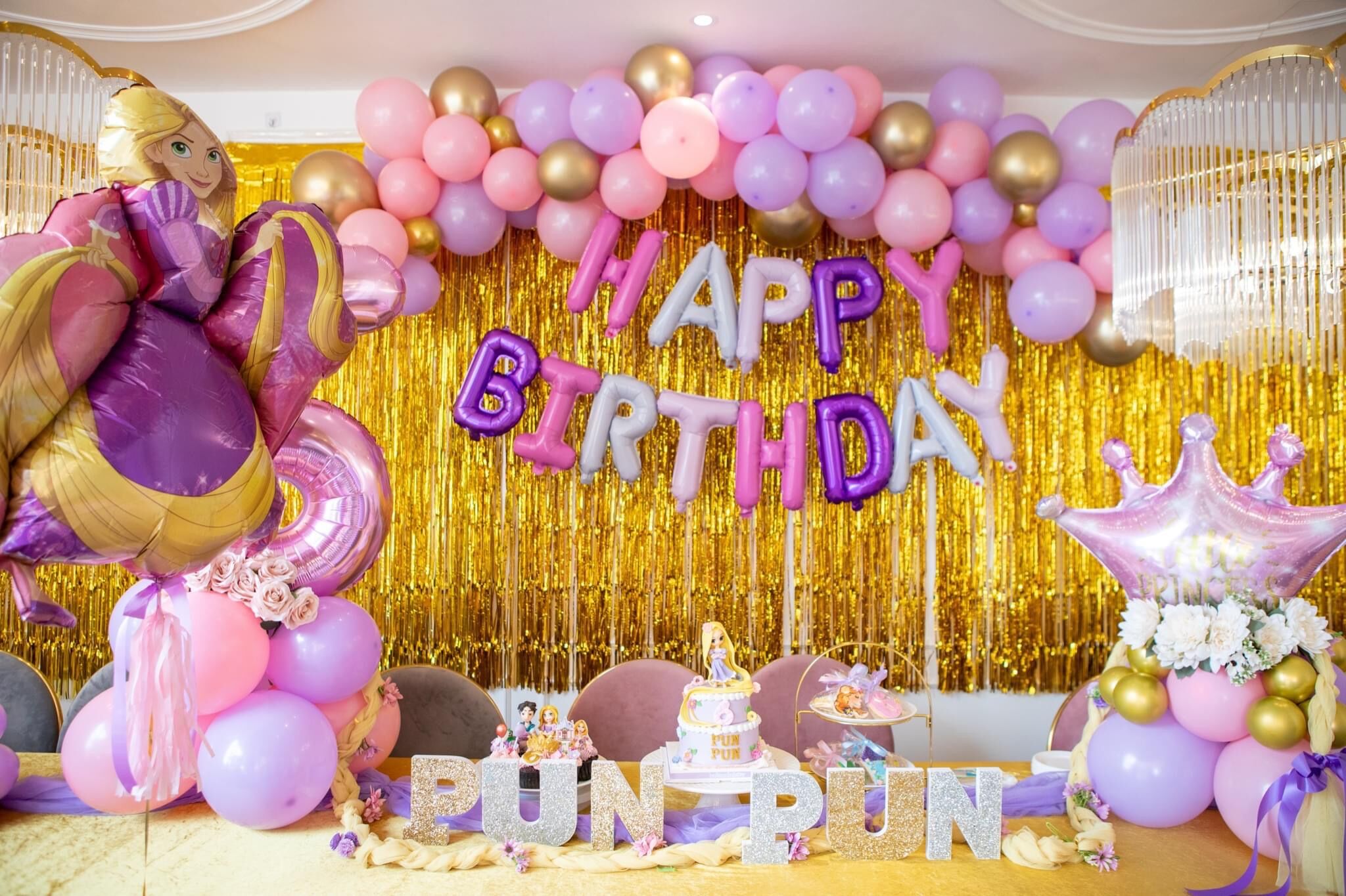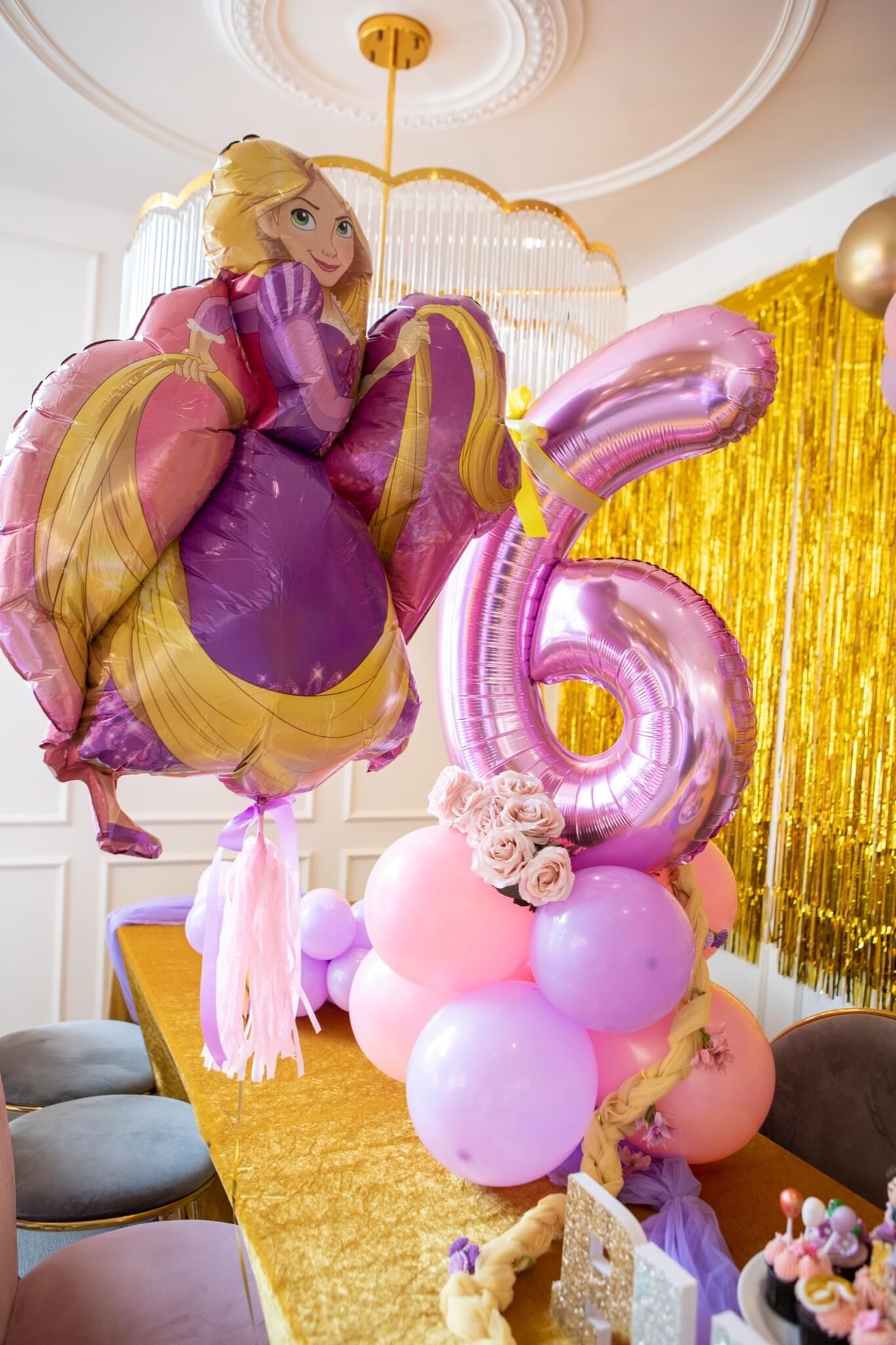 แบคดรอปลูกโป่ง ฉากลูกโป่ง Kid’s Birthday Balloon Backdrop – Rapunzel Princess 6th Birthday