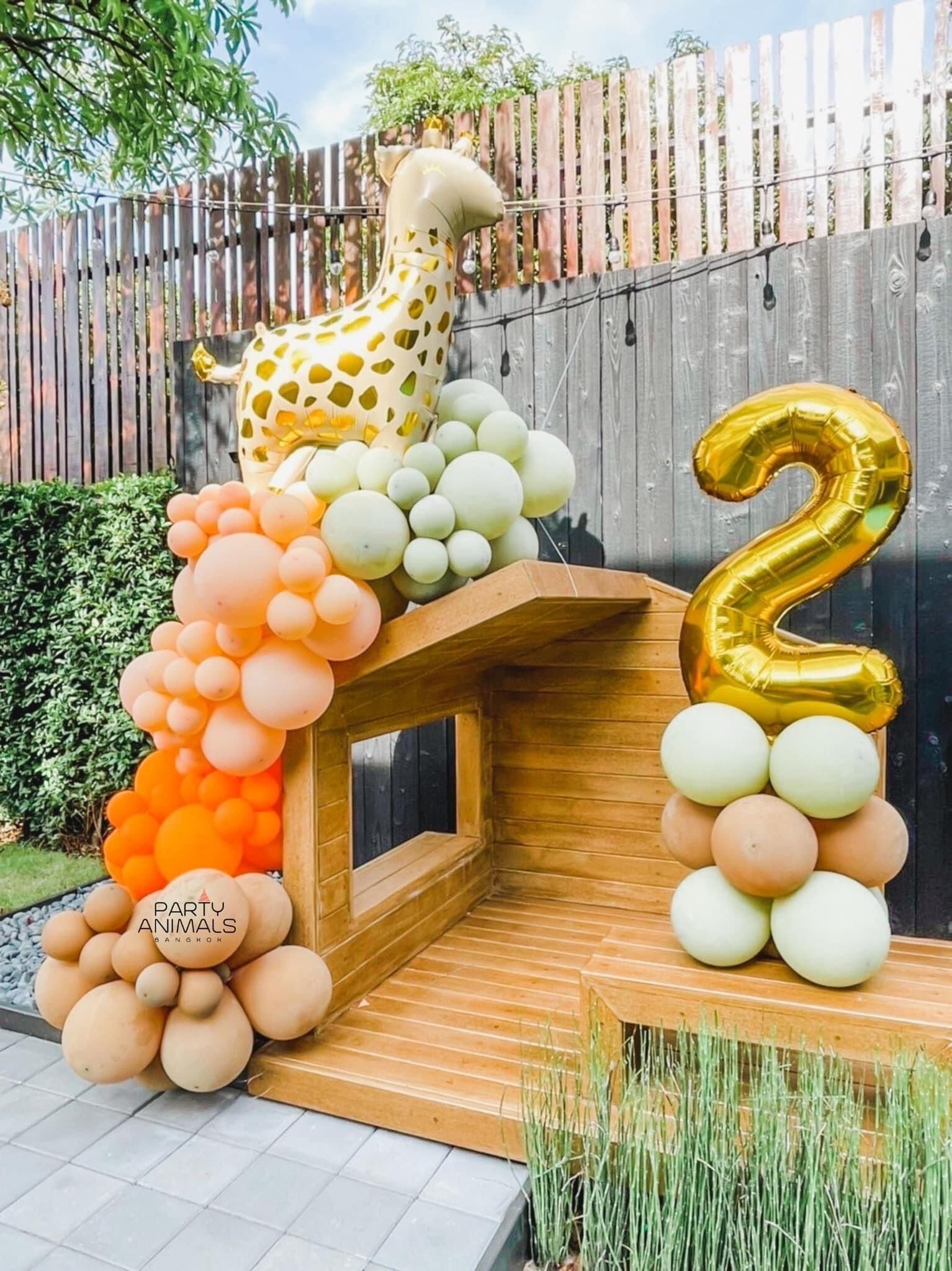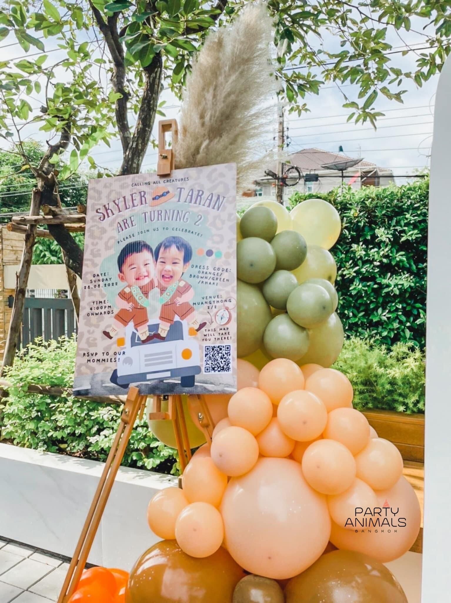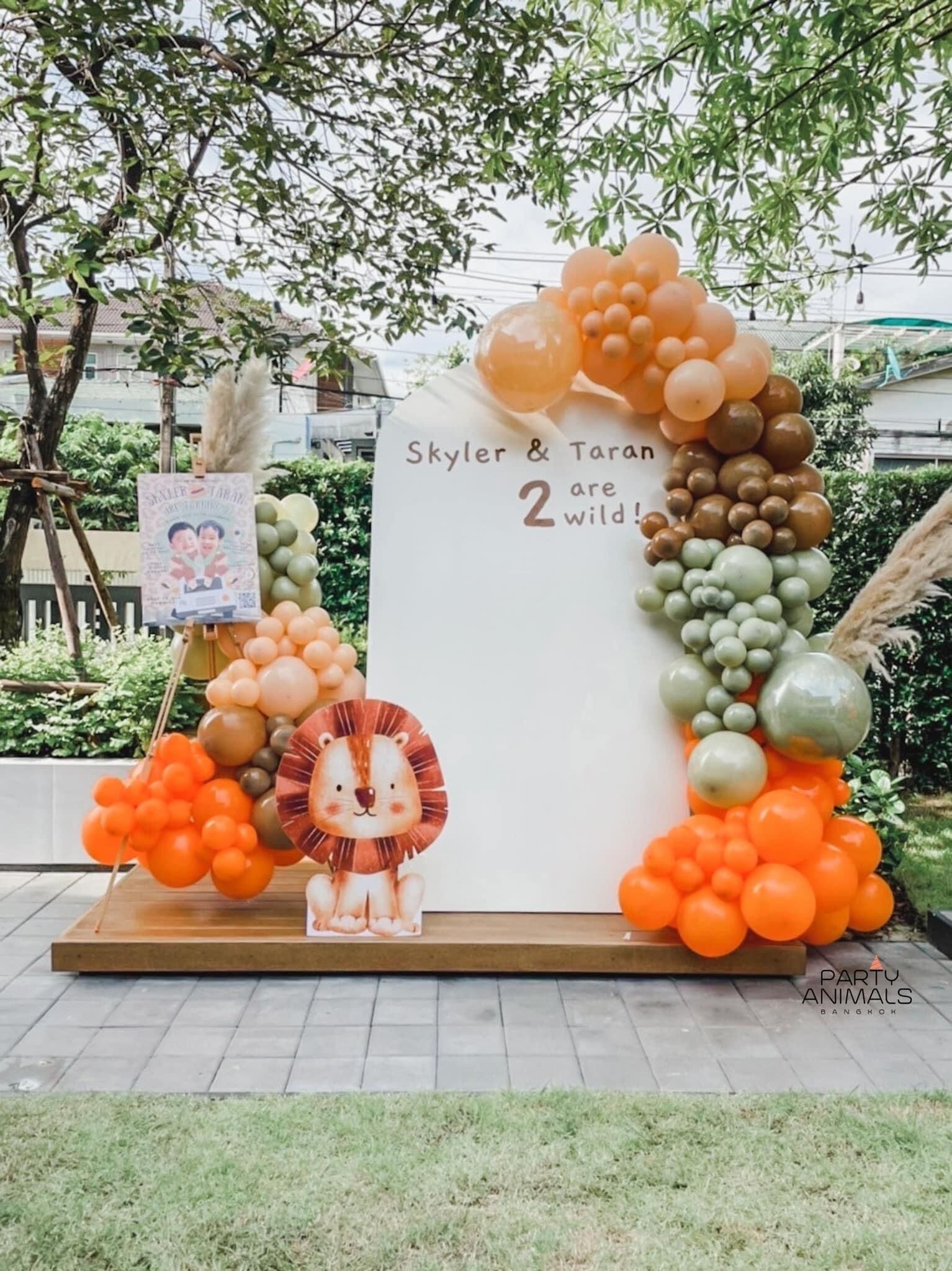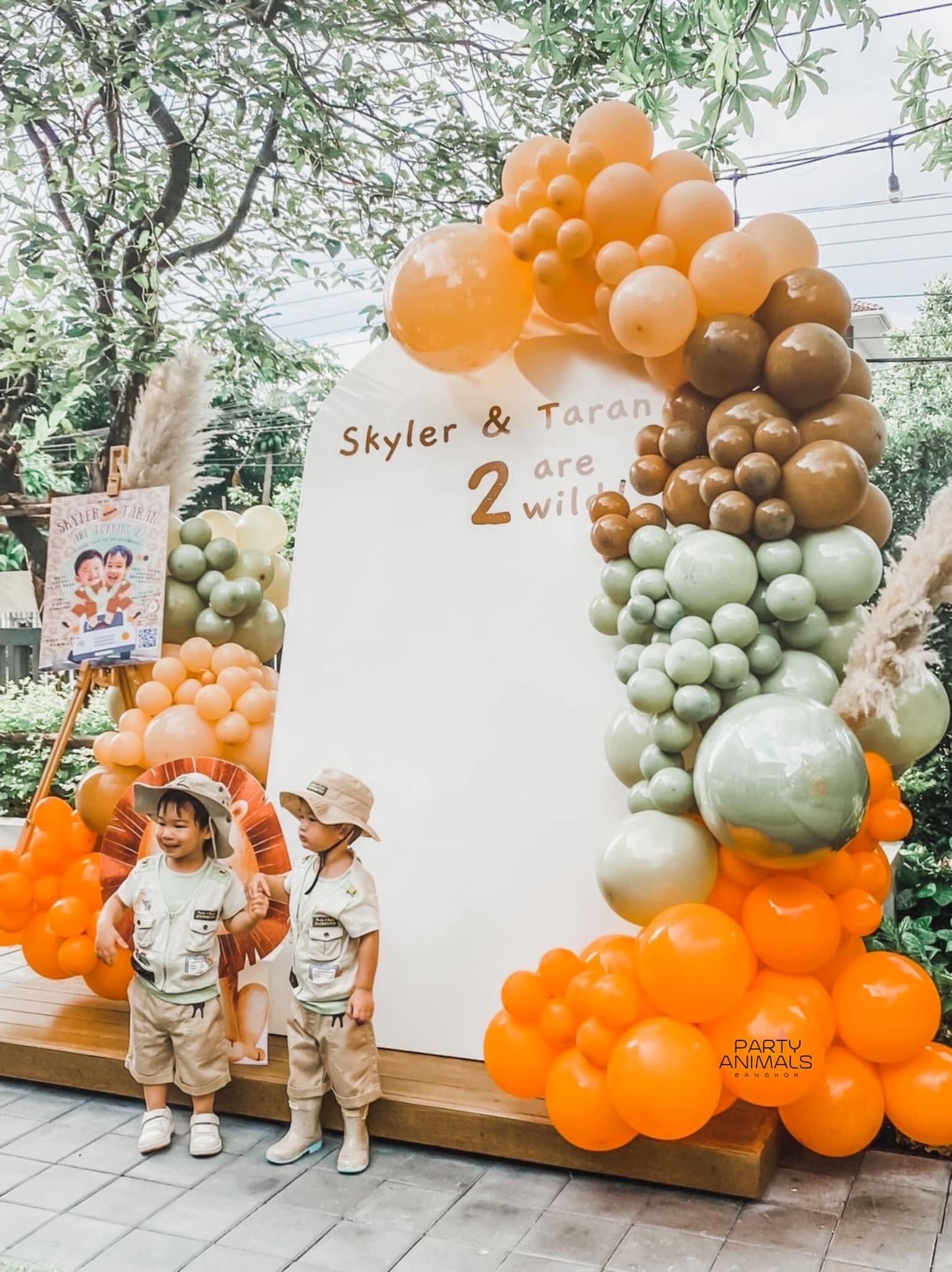 แบคดรอปลูกโป่ง ฉากลูกโป่ง Kid’s Birthday Balloon Backdrop – Safari Two Wild – Green & Brown