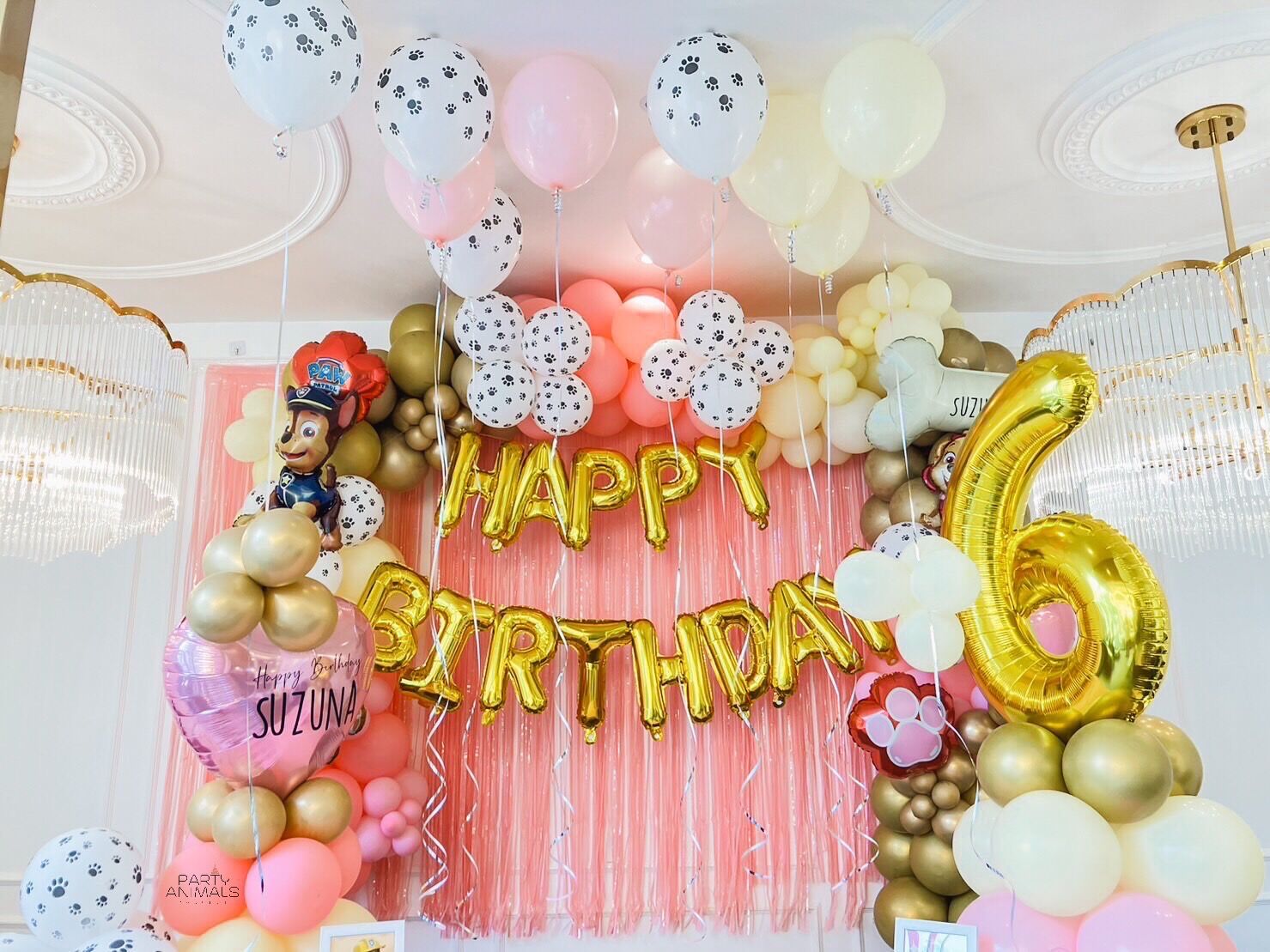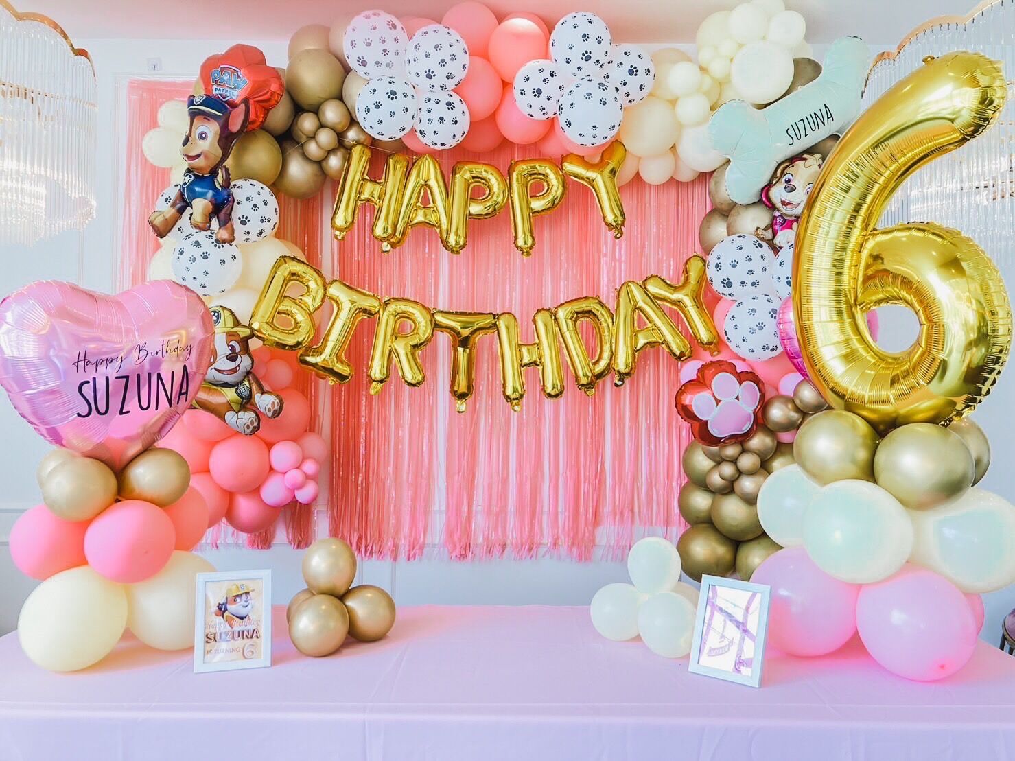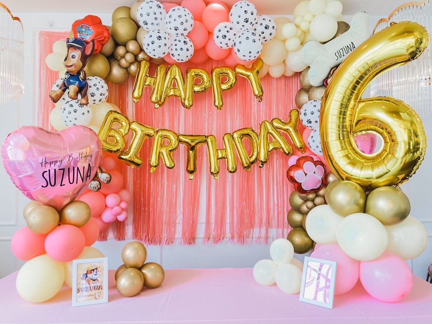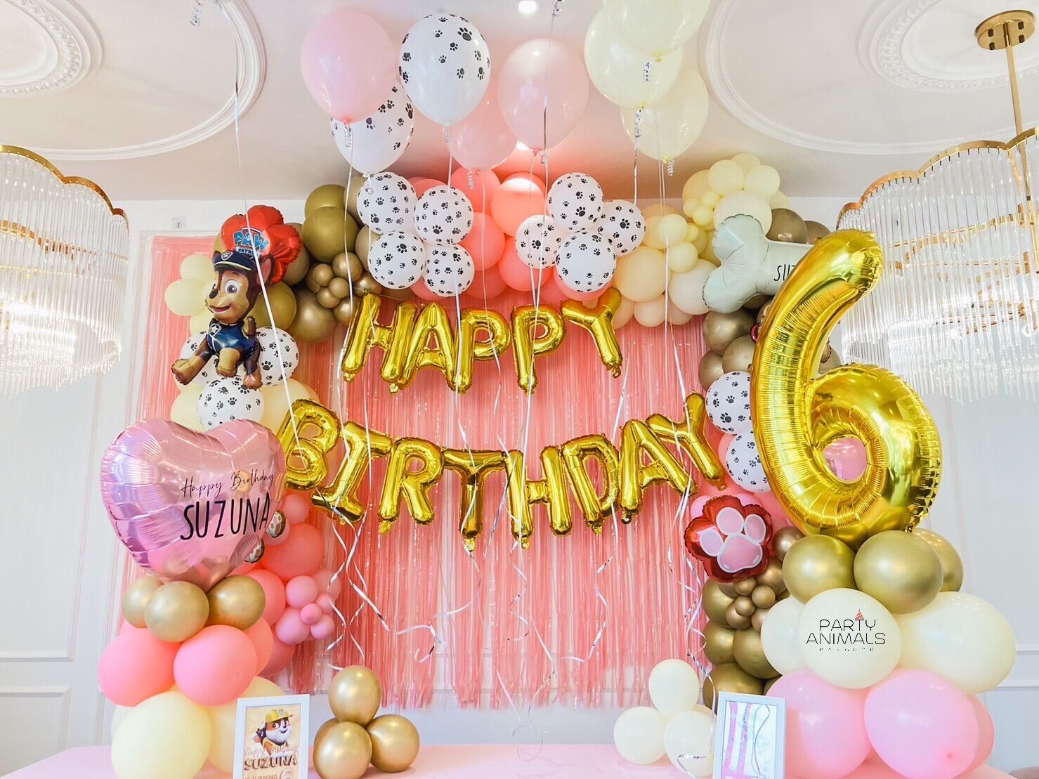 แบคดรอปลูกโป่ง ฉากลูกโป่ง Kid’s Birthday Balloon Backdrop – PAW PATROL – Pink