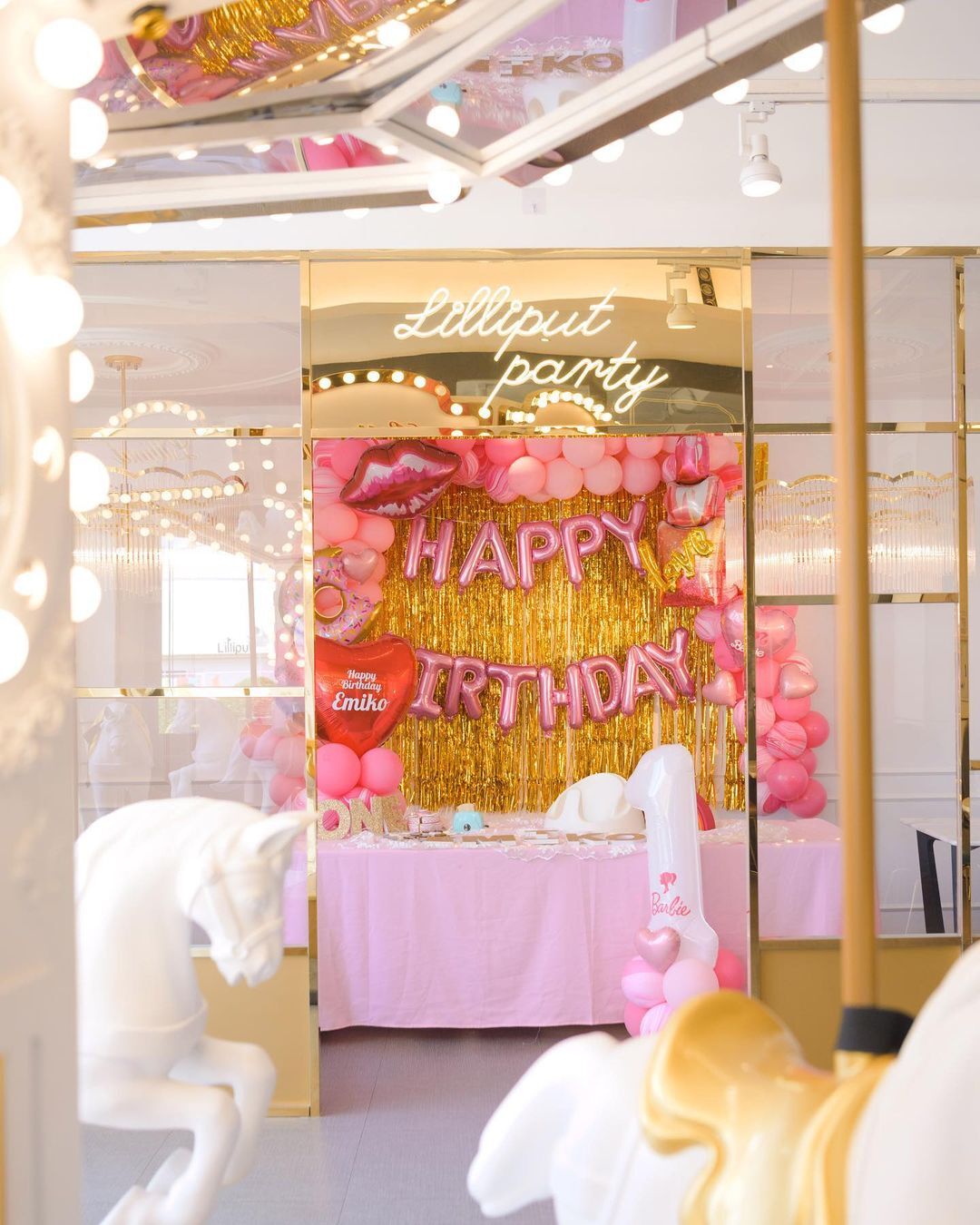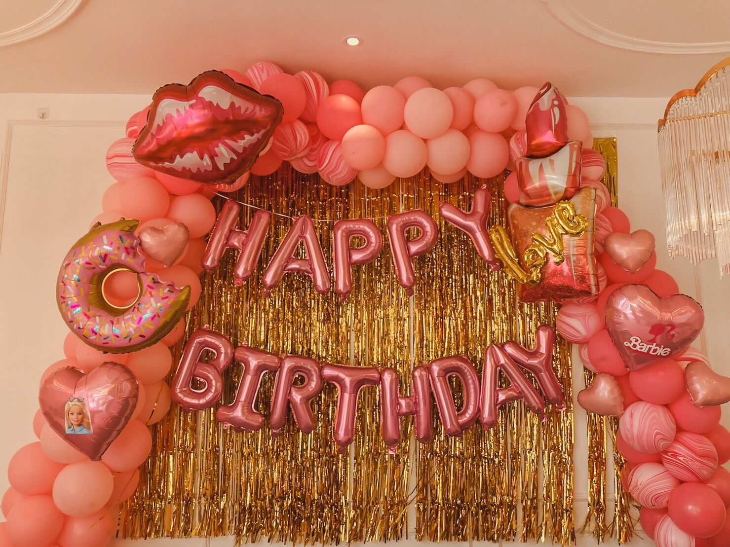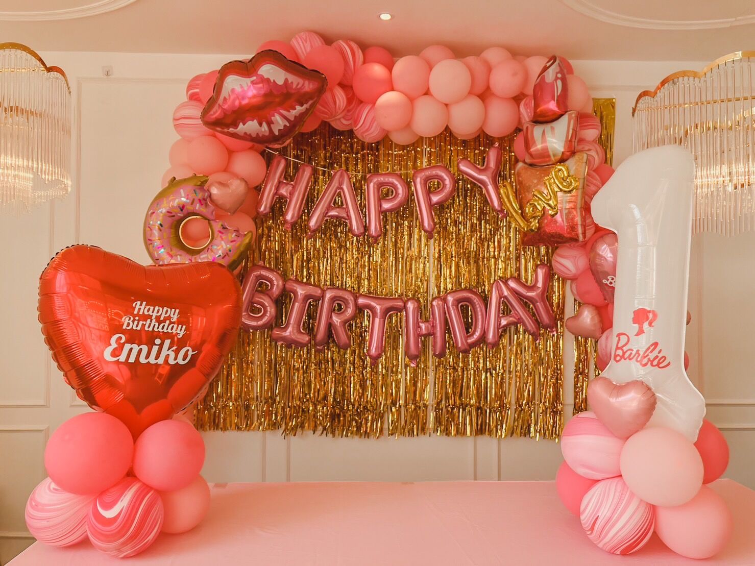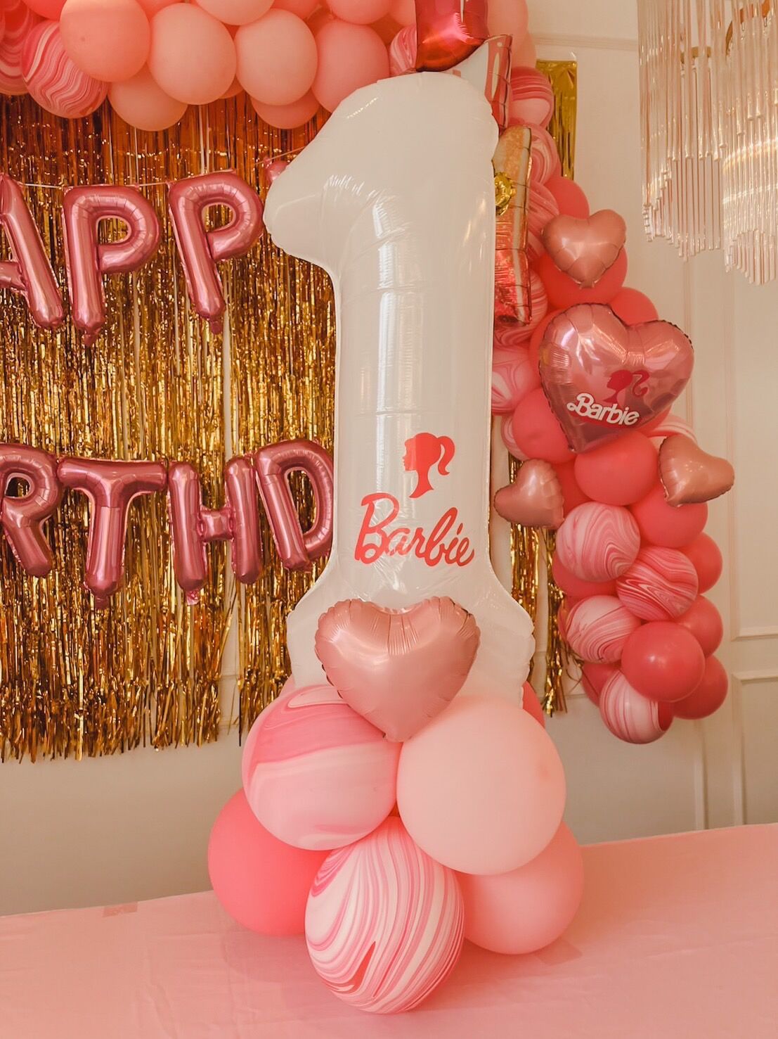 แบคดรอปลูกโป่ง ฉากลูกโป่ง Kid’s Birthday Balloon Backdrop – Barbie – Pink