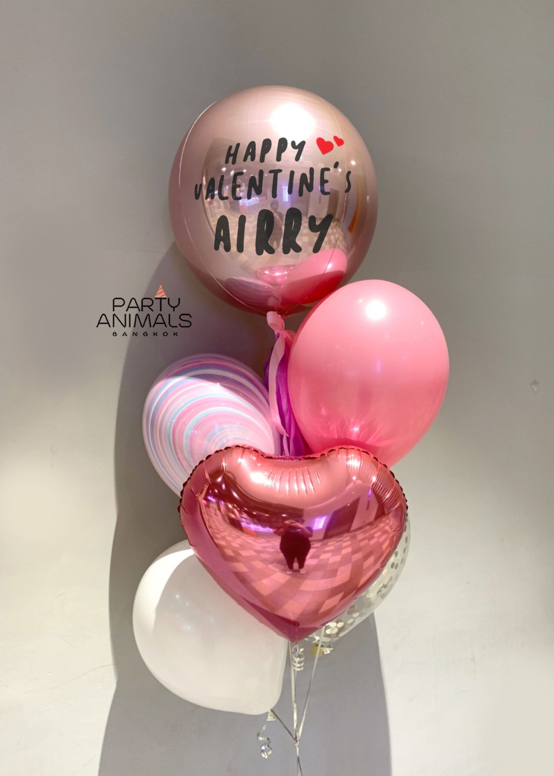 ลูกโป่งวาเลนไทน์ Valentine’s Day Balloon – Pastel Pink Orbz Marble Valentine’s Balloon Bouquet (with helium) (6 pcs)